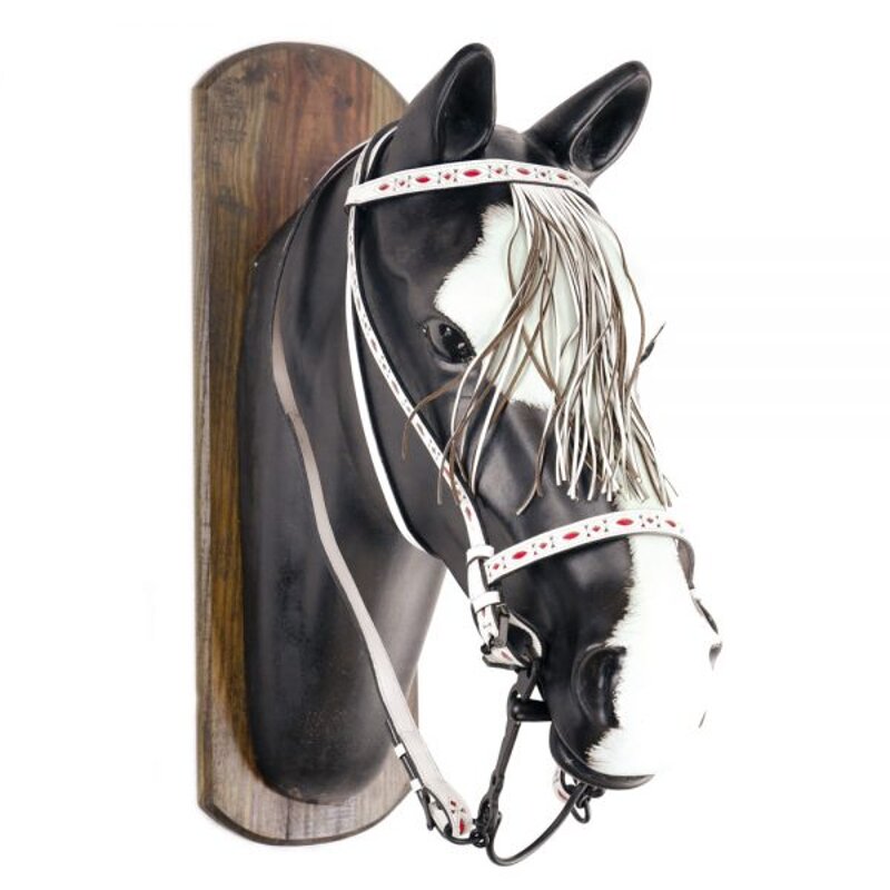 Briglia vaquera con frange e riporti rossi. Completa con redini. Misure : Unica. Colori : Bianco.