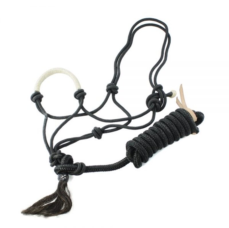 Cavezza in nylon annodata con riporti in rawhide. Completa di lunghina. Misure : Unica regolabile. Colori : Rosso, Navy, Nero, Verde.