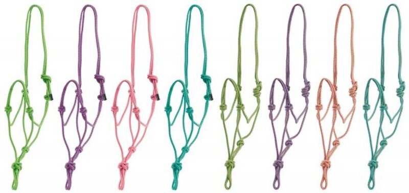 Cavezza Lami-Cell in corda annodata. Misura unica. Colori: Lime, Turchese, Rosa, Viola.