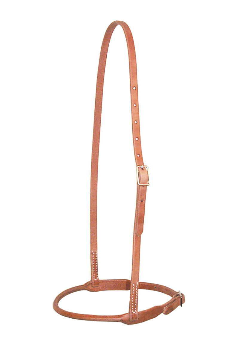 Capezzina chiudibocca Shutz Brothers in cuoio tubolare regolabile. Colore cuoio naturale.