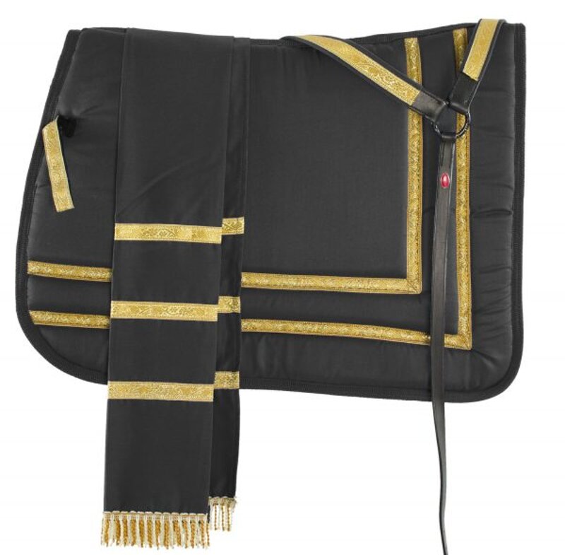 Completo spagnolo con sottosella in cotone, manta e pettorale. Misure : Full. Colori : Giallo/Rosso, Giallo/Blu, Giallo/Verde.