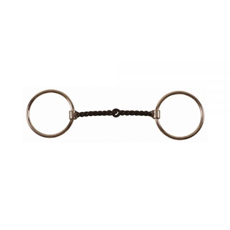 Filetto western inox ad anelli , imboccatura con torciglione grosso in ferro nero. Misura 12,5 cm.