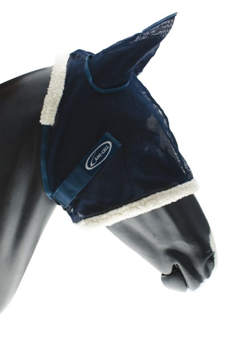 Maschera antimosche in nylon morbido con copriorecchie e chiusura velcro. Misure : S - M - L - XL. Colori : Navy Blu.