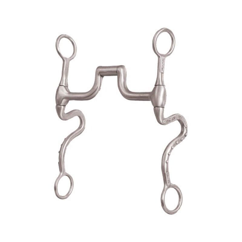 Morso western METALAB intero satinato, imboccatura con inserti in rame a ponte con rullo, aste curve decorate. Misura 12,5 cm.