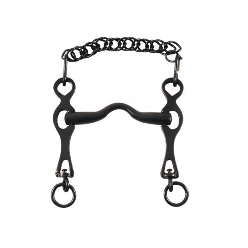 Morso Spagnolo intero con aste mobili. Misure : imboccatura 12,5 - 13,5 cm. Materiale : ferro nero.