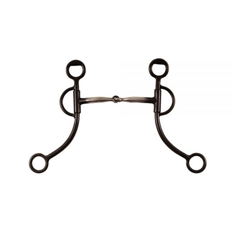 Morso western in ferro nero snodato, imboccatura inox con inserti in rame, aste lunghe. Mis 12.5 cm.