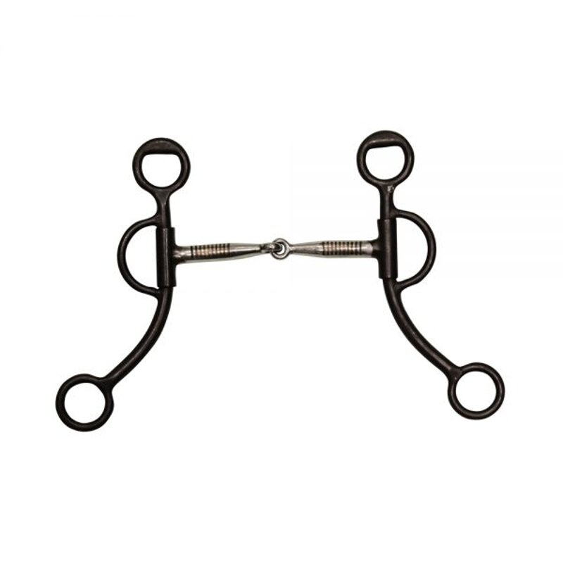 Morso western in ferro nero snodato, imboccatura inox con inserti in rame, aste corte. Mis 12.5 cm.