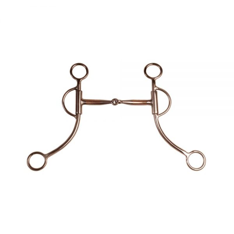 Morso western inox snodato, imboccatura con inserti in rame, aste lunghe. Misura 12.5 cm.
