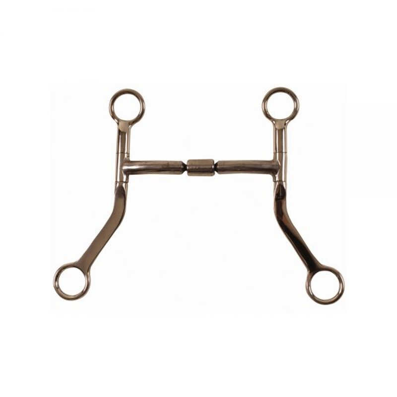Morso western inox, imboccatura con semi-snodo e inserti in rame, aste lunghe piatte. Misura 12,5 cm.