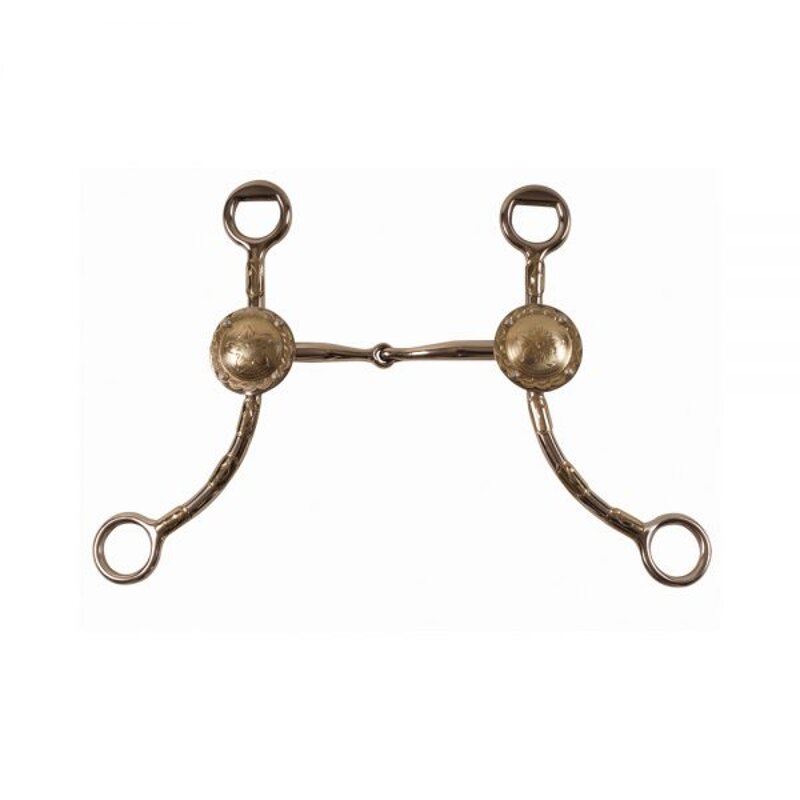 Morso western inox snodato, con decorazioni, imboccatura con inserti in rame. Misura 12,5 cm.