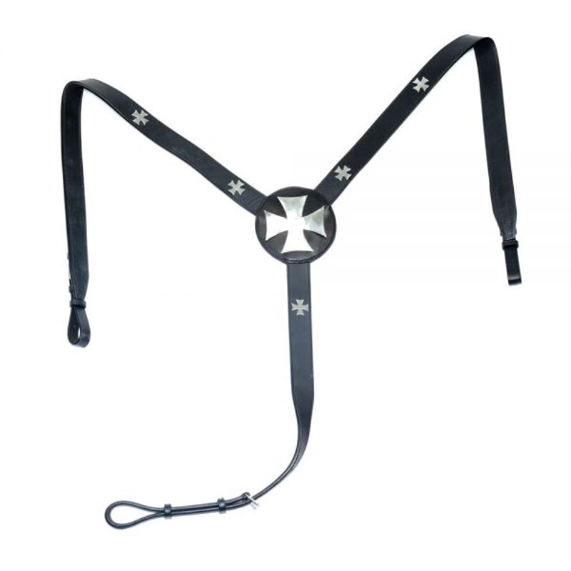 Pettorale menorquino in cuoio superiore con decorazioni argentate. Misure : Unica. Colori : Nero.