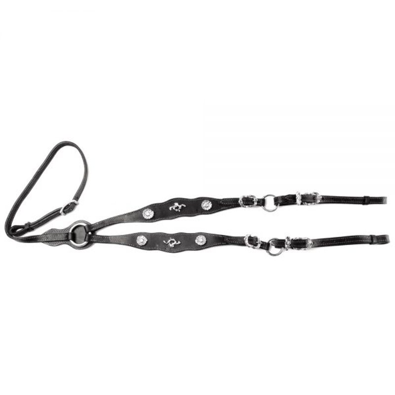 Pettorale in cuoio regolabile per sella portoghese. Misure : Unica. Colori : Testa di Moro, Nero.
