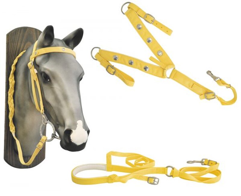 Set testiera + pettorale + redini + tie down con borchie in tinta unita. Misura Unica.