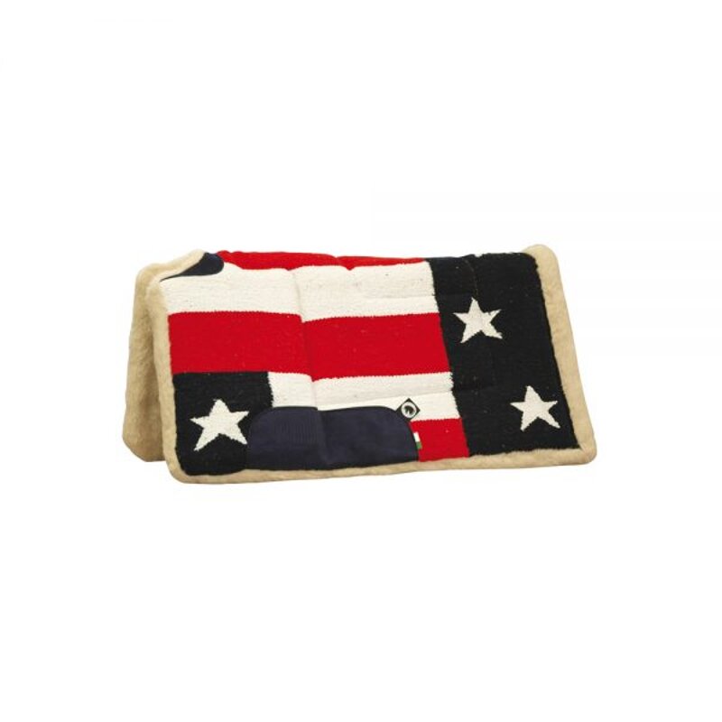 Sottosella western imbottito, tessuto navayo e pelliccietta in pura lana, colori USA, garrese aperto e rialzato.