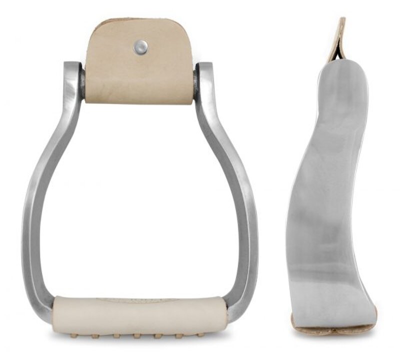Staffe western in alluminio, pedane rivestite in cuoio.