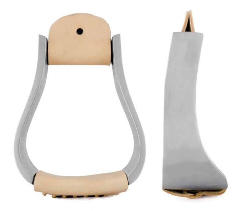 Staffe western in alluminio sagomate con pedana rivestita in cuoio.