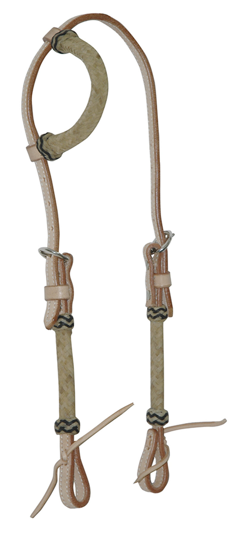 Testiera western Lakota cuoio grasso, ad orecchio con rawhide, lavorazione artigianale. Misura unica. Colori: Cuoio naturale, Testa di moro, Nero.