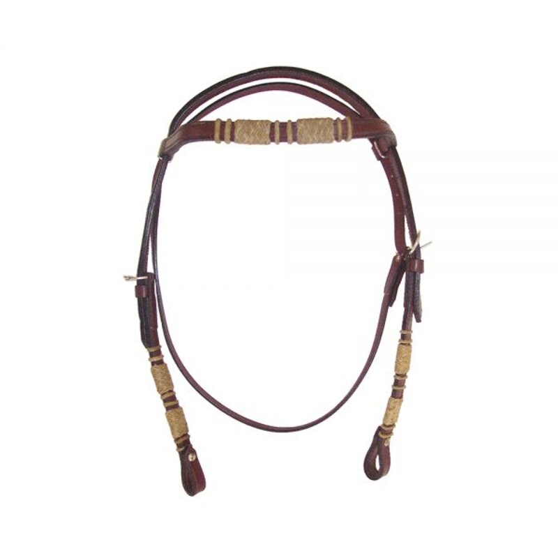 Briglia western rifiniture rawhide, completa di redini. Misura unica. Colori: Cognac, Testa di moro, Nero.