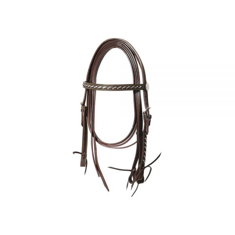 Briglia western diritta con riporti argentati, completa di redini. Misura unica. Colori: Marrone Oliato, Nero. In abbinamento a sella (SE00089).