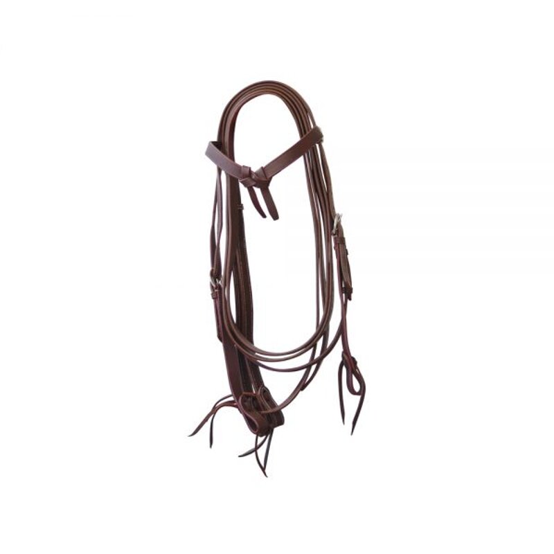 Briglia western a fiocco in cuoio liscio, completa di redini. Misura unica. Colori: Marrone Oliato, Nero.