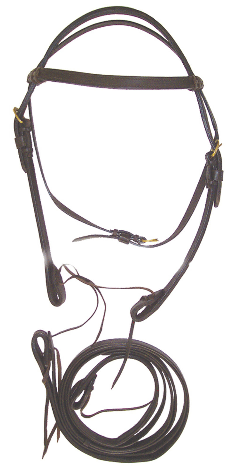 Briglia western in cuoio liscio doppio. Misura unica. Colori: Cognac, Testa di moro, Nero.